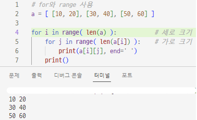 for와 range 사용