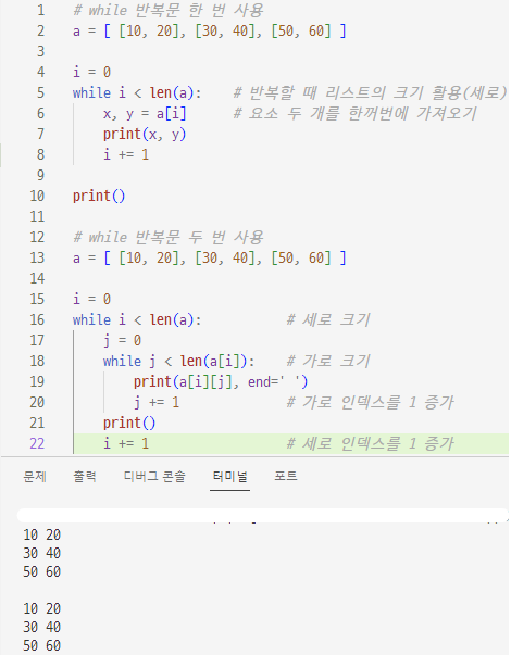 반복문으로 2차원 리스트의 요소 모두 출력하기