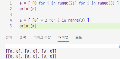리스트 표현식으로 2차원 리스트 만들기