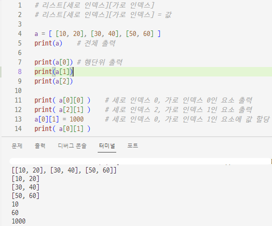 2차원 리스트 사용하기Python 2023. 10. 4. 17:25
