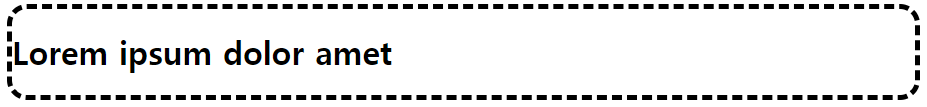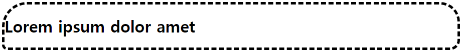 <!DOCTYPE html> <html> <head> <title>CSS Preperty Basic</title> <style> .box { border-width: thick; border-style: dashed; border-color: black; } </style> </head> <body> <div class="box"> <h1>Lorem ipsum dolor amet</h1> </div> </body> </html>기본 테두리 만들기