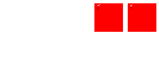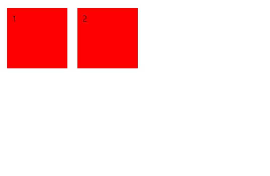 div 태그 구분하는 숫자를 보면 첫 번째 div 태그가 오른쪽에 붙고, 두 번째 div 태그는 그 옆에 붙음