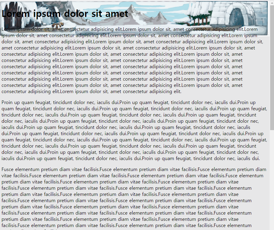 스크롤 내리면 배경 이미지 위로 올라감 <style> body { background-color: #E7E7E8; background-image: url('BackgroundFront.png'), url('BackgroundBack.png'); background-size: 100%; background-repeat: no-repeat; background-attachment: fixed; } </style>배경 이미지 고정하려면 scroll에서 fixed로 바꿔 주면 됨