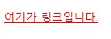 <head> <title>Document</title> <style> a:link {color: red;} a:visited {color: green;} a:hover {color: blue;} a:active {color: yellow;} </style> </head> <body> <p><a href="" target="_blank">여기가 링크입니다.</a></p> </body>