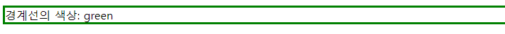 <!DOCTYPE html> <html> <head> <title>CSS3 Property Basic</title> <style> p.green { border-style: solid; border-color: green; } </style> </head> <body> <p class="green">경계선의 색상: green</p> </body> </html>
