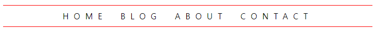 속성 설명 list-style 리스트에 대한 속성을 한 줄로 설정 list-style-image 리스트 항목 마커를 이미지로 지정 list-style-position 리스트 마커의 위치를 안쪽인지 바깥쪽인지 지정 list-style-type 리스트 마커의 타입 지 <head> <title>Document</title> <style> ul { list-style: none; text-align: center; border-top: 1px solid red; border-bottom: 1px solid red; padding:10px 0; } ul li { display: inline; text-transform: uppercase; padding: 0 10px; letter-spacing: 10px; } ul li a {text-decoration:none; color:black;} ul li a:hover {text-decoration: underline;} </style> </head> <body> <ul> <li><a href="#">Home</a></li> <li><a href="#">Blog</a></li> <li><a href="#">About</a></li> <li><a href="#">Contact</a></li> </ul> </body>