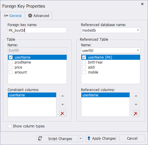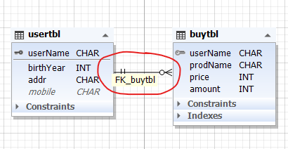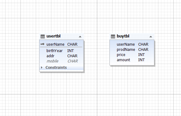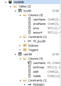 다이어그램에서 생성한 테이블이 데이터베이스에 적용는지 확인