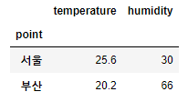 df.loc[['서울', '부산']]