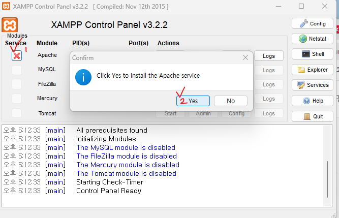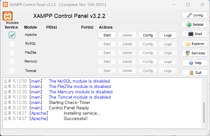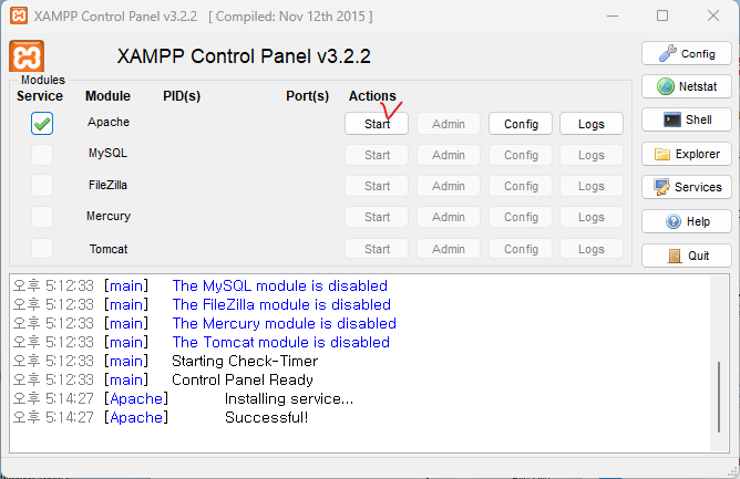 이후에는 컴퓨터를 재부팅해도 Apache 서비스 자동 시작