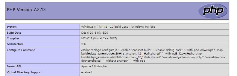<?php $con=mysqli_connect("localhost", "root", "1234") or die ("MariaDB 접속 실패"); phpinfo(); mysqli_close($con); ?>입력 후 C:\xampp\htdocs\ 폴더에 info.php 파일명으로 저장