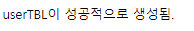 <?php $con=mysqli_connect("localhost", "root", "1234", "sqlDBp") or die("MariaDB 접속 실패"); $sql=" CREATE TABLE userTbl ( userID CHAR(8) NOT NULL PRIMARY KEY, name VARCHAR(10) NOT NULL, birthYear INT NOT NULL, addr CHAR(2) NOT NULL, mobile1 CHAR(3), mobile2 CHAR(8), height SMALLINT, mDate DATE ) "; $ret = mysqli_query($con, $sql); if($ret) { echo "userTBL이 성공적으로 생성됨."; } else { echo "userTBL 생성 실패"."<br>"; echo "실패 원인 : ".mysqli_error($con); } mysqli_close($con); ?>