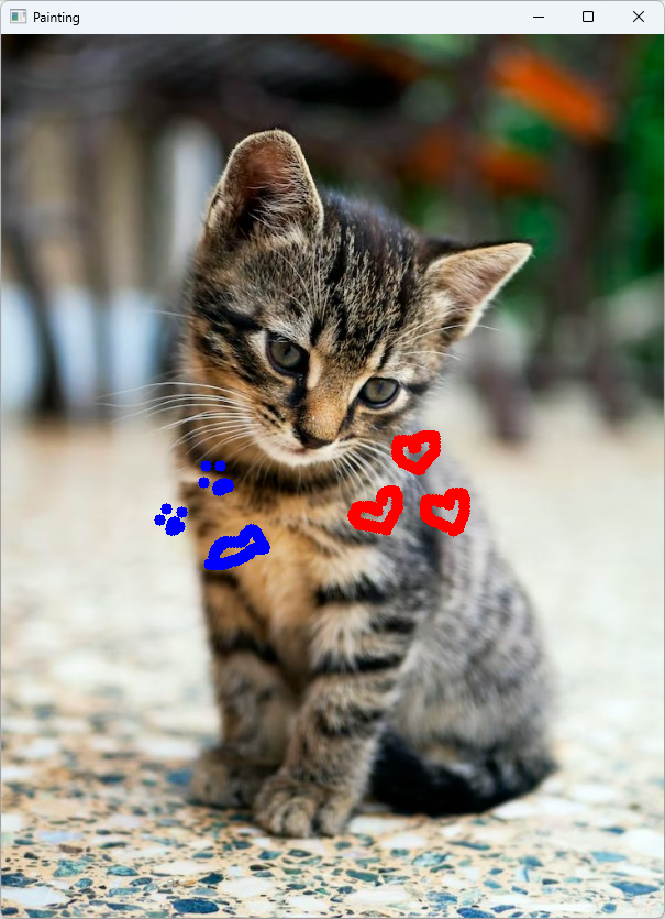 cv.imshow('Painting',img) # 수정된 영상을 다시 그림